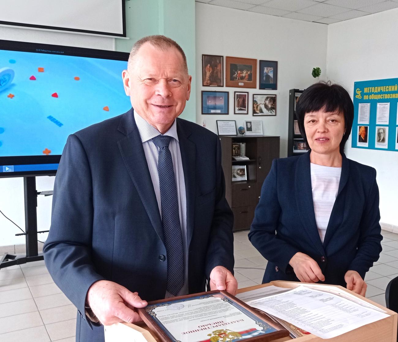 М.Е. Кощеев вручил директору ИБМК Евгении Викторовне Реховой благодарственное письмо, победителям конкурса – почетные грамоты и ценные подарки.